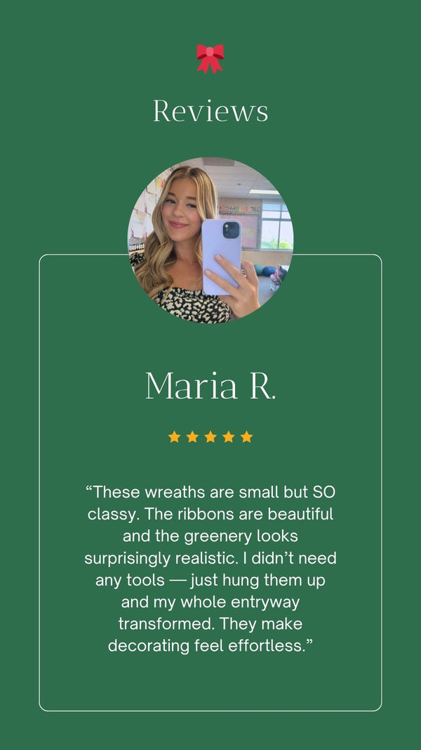 No nails, no damage, no instructions. Each wreath comes with a pre-attached ribbon — simply hang and enjoy instant Christmas décor.